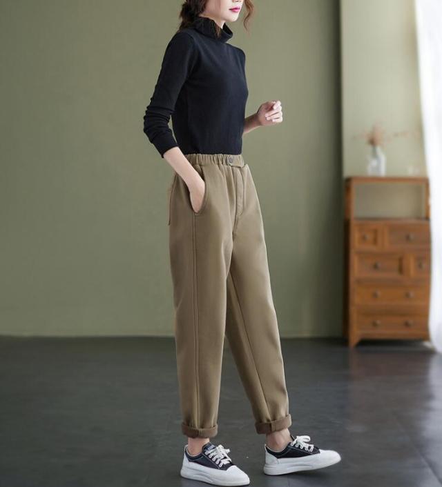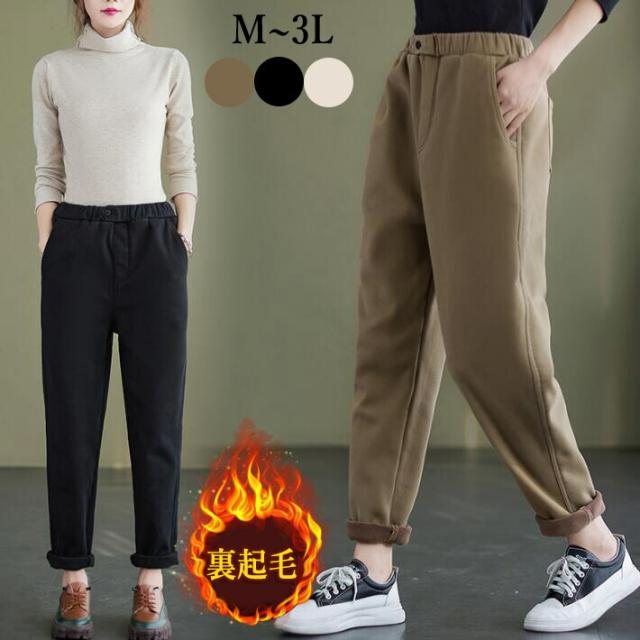 パンツ レディース テーパードパンツ 裏起毛パンツ サルエル ウエストゴム 厚手パンツ 裏ボア 9分丈 ボトムス ズボン ゆるパン 大きいサイズ 厚手 M L 2L 3L