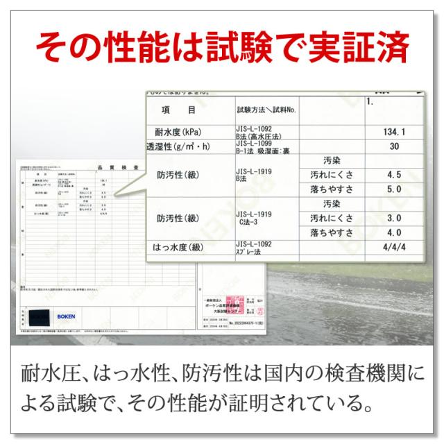 止水テープ付きで縫い目からの浸水も防ぎます。