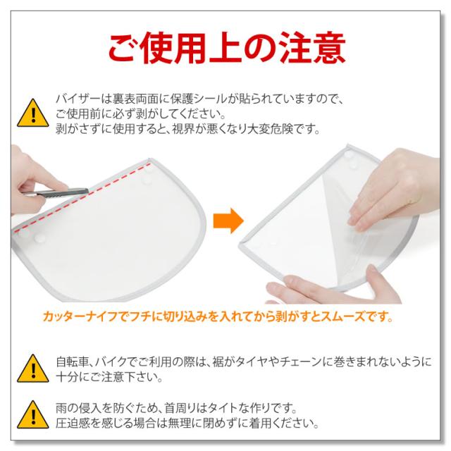 | アウトドアブランドのラドウェザー から、自転車用レインポンチョが登場! 驚異の耐水圧100,000mmで、土砂降りでもしっかり防水。 さらにフライパンでもおなじみのテフロン加工により、水も汚れも弾いてお手入れ簡単。 バイザーは2way仕様で、顔をしっかりガード。 フードはドローコード付きで隙間もブロック。 前かごまで覆えるロング丈設計で、手元や荷物が濡れないのも嬉しいポイント。 止水テープ付きで縫い目からの浸水も防ぎます。 わずか240g※と軽量で、着心地も快適。 ※バイザー含まず 自転車通勤やアウトドアにぴったりの、試験で実証された信頼の一着。 雨の日の自転車移動が、もっと快適に変わります! ■驚異の耐水圧100,000mm 一般的な傘の耐水圧は250mm程度なので、約400倍の耐水圧があり大雨でも浸水しにくい。 ■テフロン加工で超撥水 フライパンなどでお馴染の「テフロンTM加工」を施しているので、撥水力が高く水が浸み込まない。 ■汚れも弾いてお手入れ楽々 テフロンTM加工は、水だけじゃなく汚れも弾くから水をかけるだけで汚れが落ちて綺麗を保てる。 ■着脱可能なバイザー付き 面ファスナーで着脱できるバイザー(ツバ)付き。天候やシーンによって使い分けできる。 ■顔が濡れない2wayバイザー バイザーは真っ直ぐにも顔の前に下ろしても使える2way。 下ろせばメイクも崩れにくい。 ■フードの隙間もガード フードを調整できるドローコード付きで、顔が濡れにくく隙間からの水の入り込みを防ぐ。 ■縫い目からも浸水しない 浸水しやすい縫い目は、止水テープでしっかりガード。 水が入る隙は無い。 ■その性能は試験で実証済 耐水圧、はっ水性、防汚性は国内の検査機関による試験で、その性能が証明されている。 ■重量わずか240gで超軽量 重量はわずか240gで、250mlペットボトルとほぼ同じ。 着ている時も持ち歩く時も軽やか。 ■自転車に適した設計 前面は自転車の前カゴに被せられる長さで手元や荷物が濡れない。 ■風が拭いてもめくれない 本体裾部分には紐付きで、前カゴに結んで固定できる。洗濯バサミ等を用意する必要もない。 ■夜道も安心の反射ロゴ 胸元のロゴは反射素材。視認されやすく夜道も安心。 ■バイザーの使い方 顔の前に下ろして使用する時は、 2枚重なっているバイザーの下側をずらすように下方向に引いてからボタンを留めてください。 ※ 自転車でご利用の場合は、下ろしたバイザーで視界が遮られないようにご注意ください。 | |