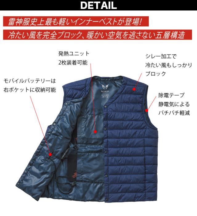 最も軽いインナーベスト。発熱ユニット装着でさらに暖かい。