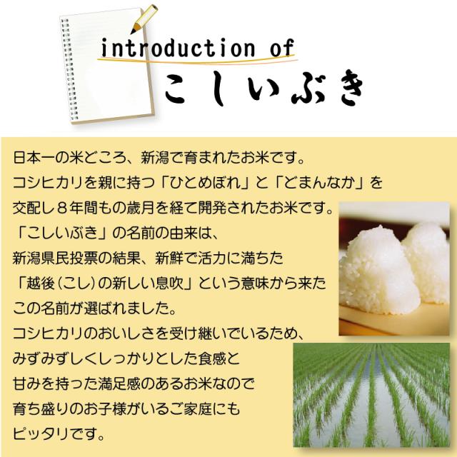 ■こしいぶきは、新潟県がコシヒカリに次ぐ品種として新潟県と農業団体が一体となり開発を進め、8年間もの歳月を経て開発されたお米です。