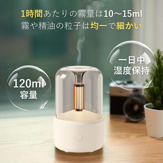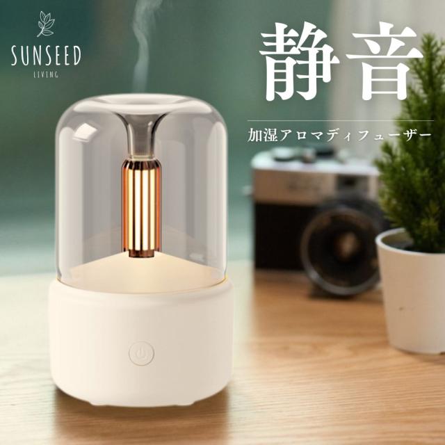 Sunseed Living アロマディフューザー 静音超音波エッセンシャルオイルディフューザー 加湿器 アロマオイル対応 白 小型静音持ち運び便利 温かく快適なキャンドルライトアロマランプ 超音波高周波のエッセンシャルオイル噴霧技術