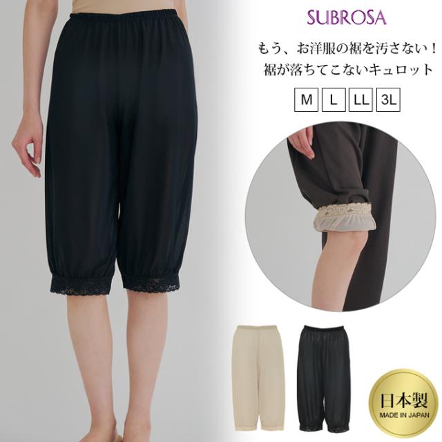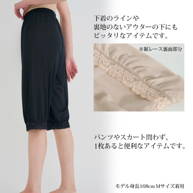 日本製 裾レース ペチコート ペチパンツ パンツのお悩み解決 裾が汚れない キュロット パンツ 下着 レディース 浴衣 肌着 トイレ 裾汚れ 対策 インナー 股ずれ 防止 ロング シンプル 透け防止 黒 ベージュ 大きいサイズ 透けない 下着透け対策 65cm丈 春 夏 秋 冬【mail】
