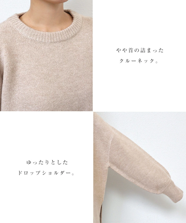 ふっくら、もっちり。 ボリューム感と肌ざわりが心地よい、 新作ニットが登場です。 程よいゆとりのボックスシルエット! やや首の詰まったシンプルなクルーネックや 程よいボリューム袖、長めの裾リブが さりげなくこなれ感を演出してくれる1枚。 ヒップが隠れる丈感に、 抜け感のあるサイドスリットもポイントです。 さらっと着用するだけで、トレンド感ある スタイリングに仕上がる、1枚は持っておきたい 今シーズンのおすすめニットです。 ※発送上の状態によって商品がシワになる場合がございます。予めご了承くださいませ。 |