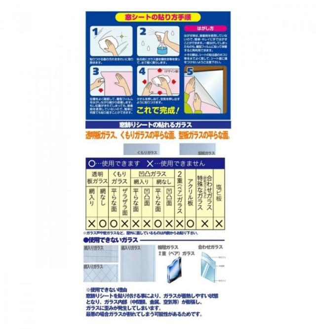 商品詳細:粘着剤を使わずに「ピタッと」貼る装飾シートですので、のり残りの心配も無く、貼り直しも簡単にできます。 生産国:日本 素材・材質:塩化ビニール樹脂100%、保護フィルム(ポリエステル100%) 商品サイズ:丈90×90cm