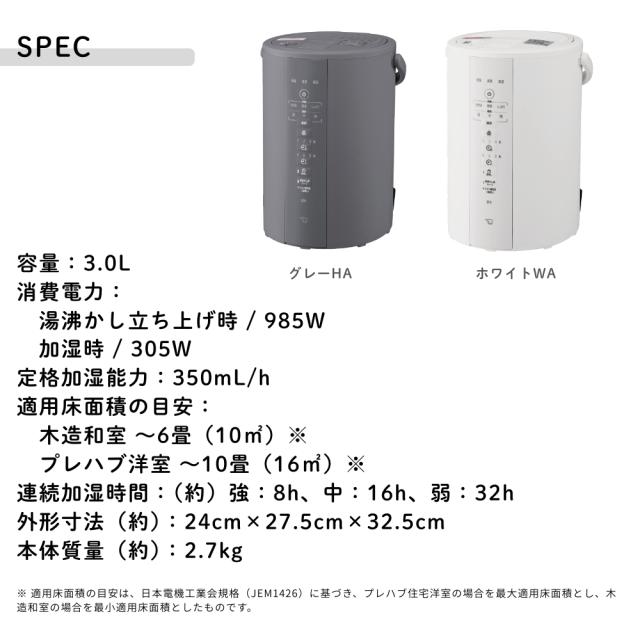 | 商品名: 象印 スチーム加湿器 EE-DF35 3.0L グレー ホワイト スチーム式加湿器 静音設計 お手入れ簡単 安心構造 寝室 リビング用 ウイルス対策 チャイルドロック付き 転倒湯もれ防止