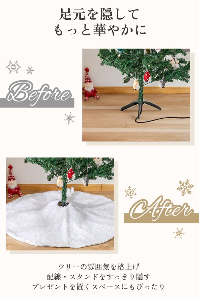 配線やスタンドをすっきり隠し、ツリー全体をより華やかに引き立てます。