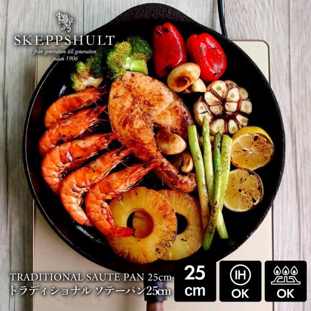 スケップシュルト トラディショナルソテーパン 25cm SKEPPSHULT | フライパン 鍋 鉄 鋳鉄 キャストアイアン IH対応 ガス 火 オーブン 北欧 調理器具 料理 キッチン 耐久性 シンプル かっこいい 鉄分 ギフト プレゼント
