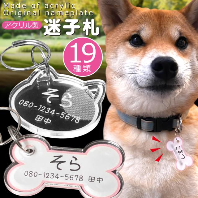迷子札 送料無料 キーホルダー 首輪 猫 犬 迷子札猫 まいごふだ 軽量 アクリル ネーム プレート ネームタグ 名札 チャーム チョーカー プレゼント おしゃれ かわいい ペット ネコ ねこ 猫 犬 アクセサリー おしゃれ 日本製 猫の日 オーダーメイド ネーム入り ドッグタグ