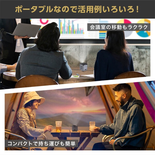 自宅でも外出先でも、大画面の映像を手軽に楽しめます。