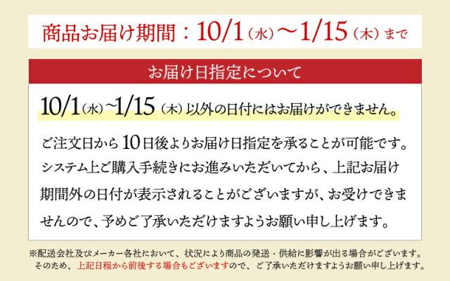 ご注文日から10日後よりお届け日指定を承ることが可能です。