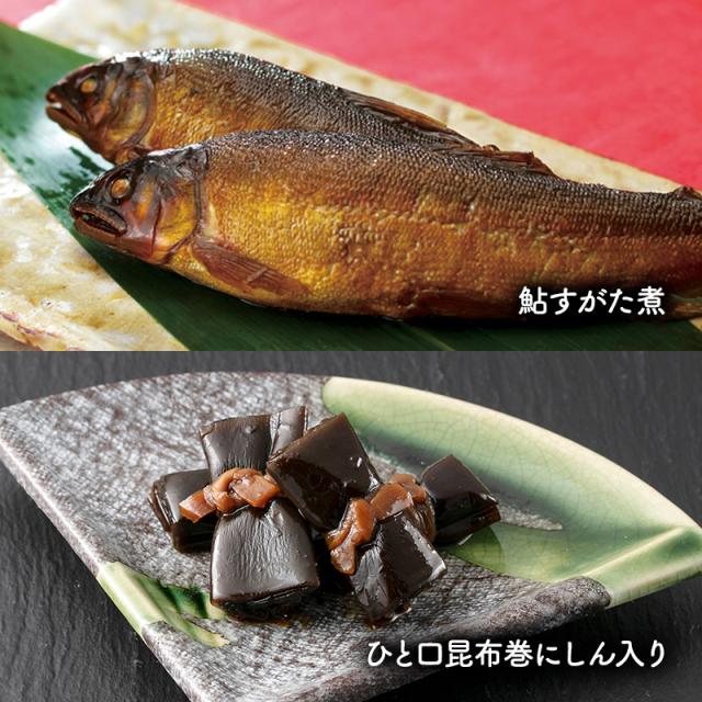 〜2026/1/15お届け 鵜舞屋 昆布巻 惣菜詰合せ KS-40A 和食 惣菜 鮎 佃煮 つくだ煮 鮎すがた煮 牛しぐれ きのこしぐれ ひと口昆布巻にしん入り 手提げ袋付き 内祝い ギフト 送料無料 UMKS-40A