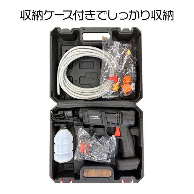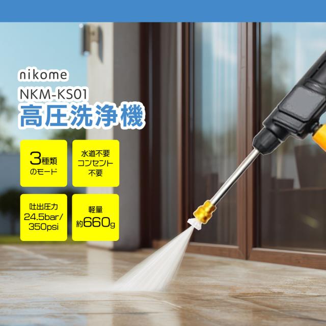 高圧洗浄機 コードレス バッテリー式 コンパクト 軽量 家庭用 強力 噴射 泡噴射 ケース付き [ nikome ニコメ 充電式高圧洗浄機 NKM-KS01 ] 洗車 タイヤ 玄関 庭 窓 コケ 屋外 階段 お風呂 外壁