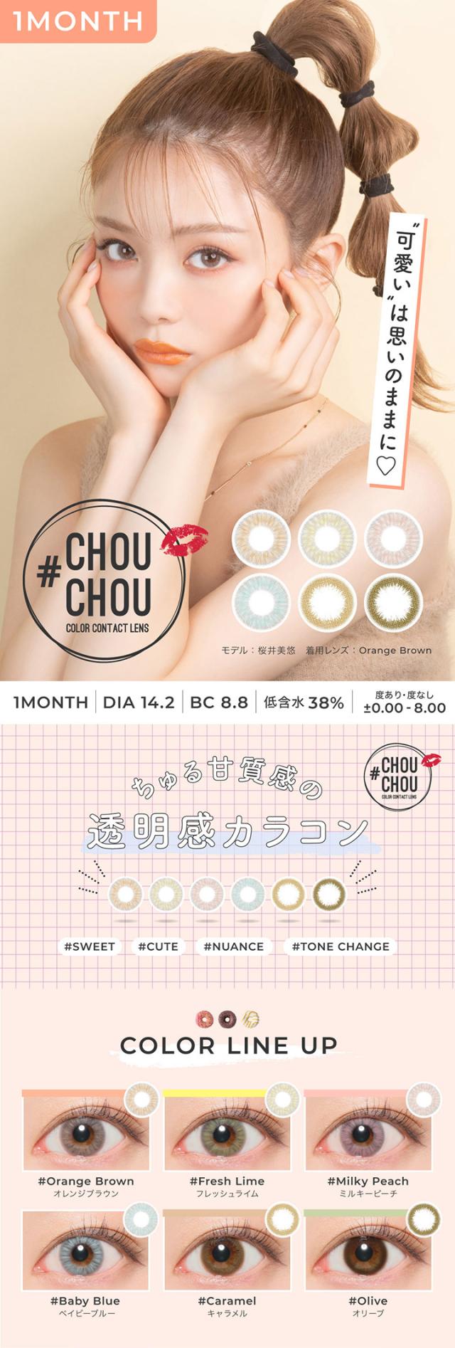 カラコン CHOUCHOU 1month 1箱 1枚入 チュチュ マンスリー 度あり 度なし 1ヶ月 ワンマンス ナチュラル ハーフ 潤い うるうる フチなし カラーコンタクト