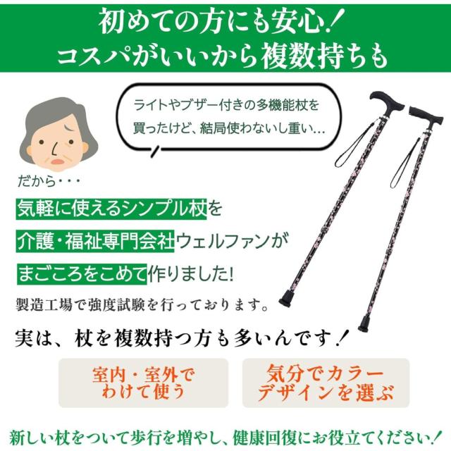 ウェルファン まごころステッキベーシック 伸縮型 介護用品 ステッキ 杖 長さ調節可能 高齢 シニア 男性 女性 おしゃれ シンプル つえ