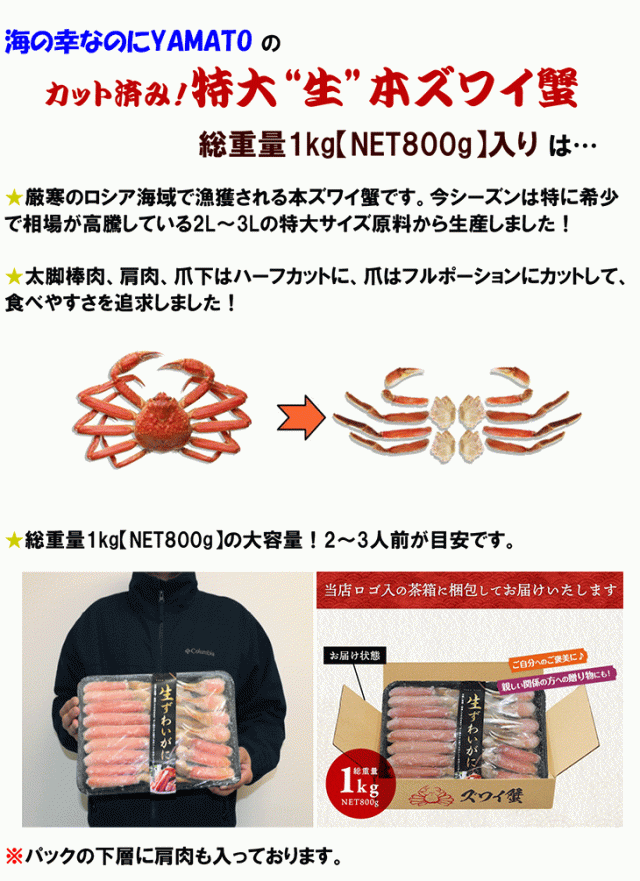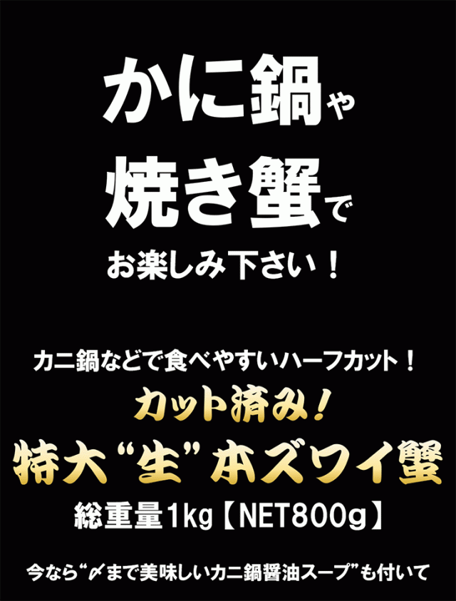 カット済み!特大“生”本ズワイ蟹1kg【NET800g】 今なら“カニ鍋の素”をサービス中! お刺身OK高鮮度!本ズワイガニ 本ズワイ蟹 ずわい ズワイ かに かに 蟹 かに鍋 カニ鍋 殻剥き済み