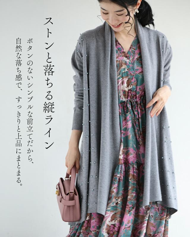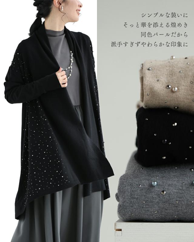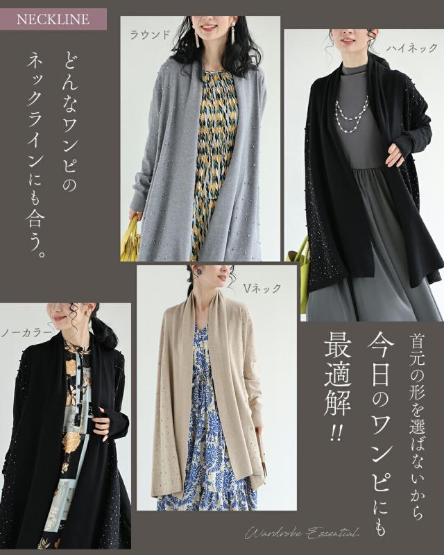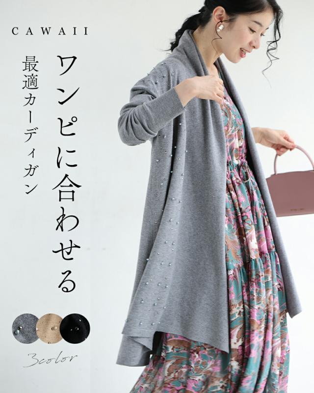 新作11月5日 ワンピに合わせる 最適ロングカーディガン カーディガン 羽織り レディース ファッション 秋服 冬服 着回し 重ね着 パール ビジュー cawaii fsz00073ss S~2L対応 ブラック グレー ベージュ 日常使い キレイめ シンプル ミセス 30代 40代 50代