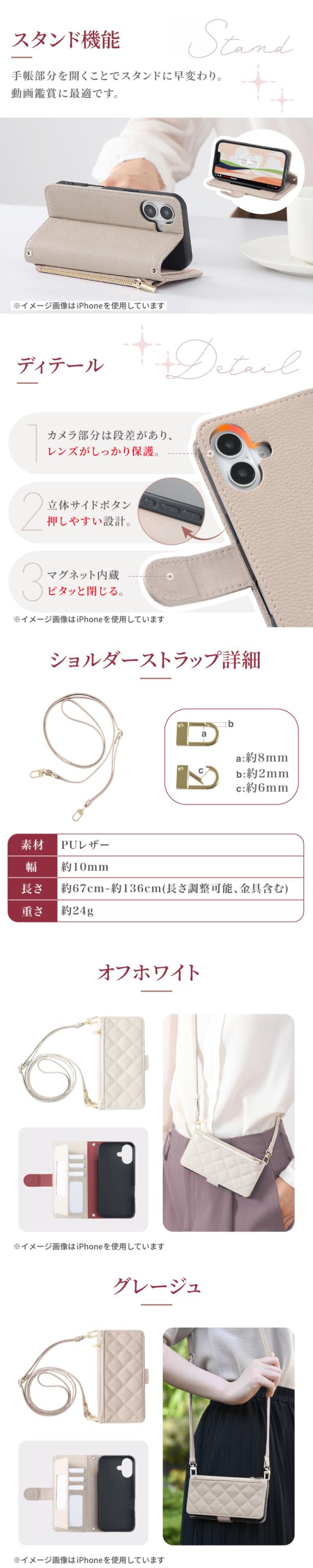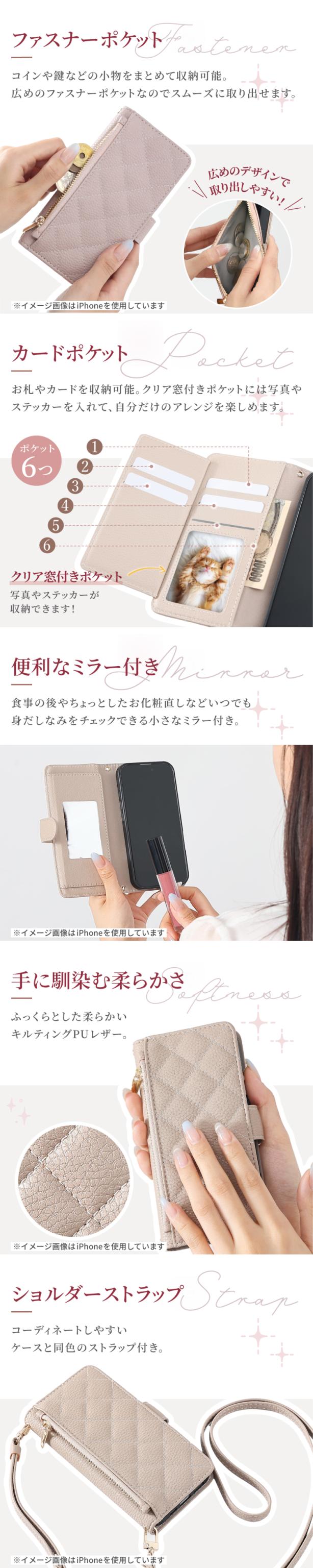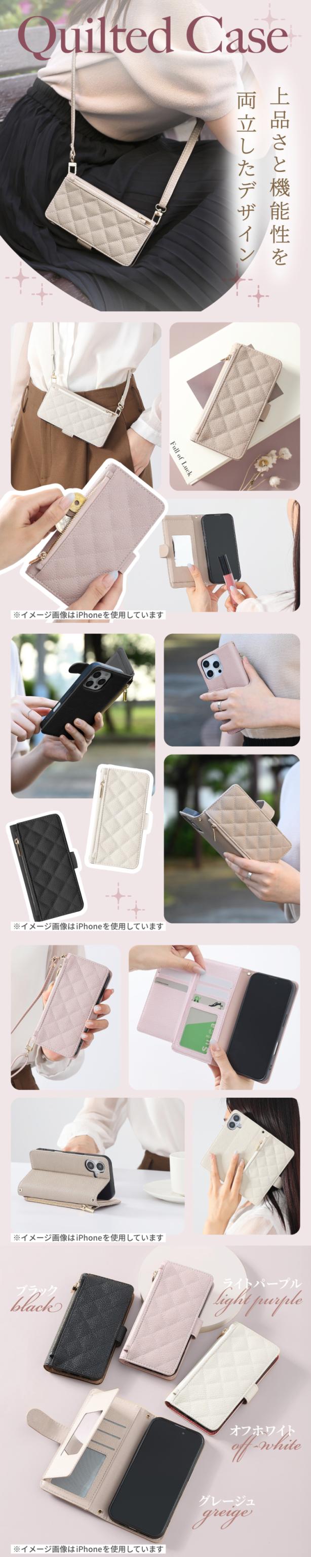 AQUOS sense9 手帳型ケース AQUOS sense10 キルティング スマホケース アクオス センス9 ショルダーストラップ スマホショルダー ファスナー付き ポケット付き AQUOSケース アクオス