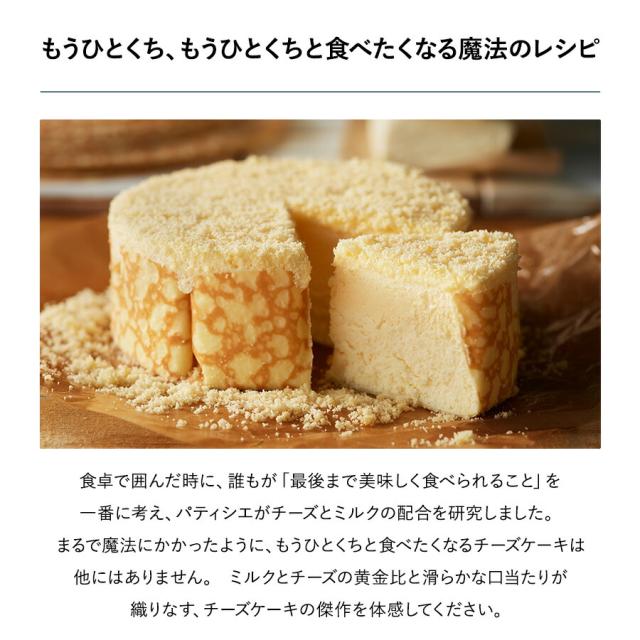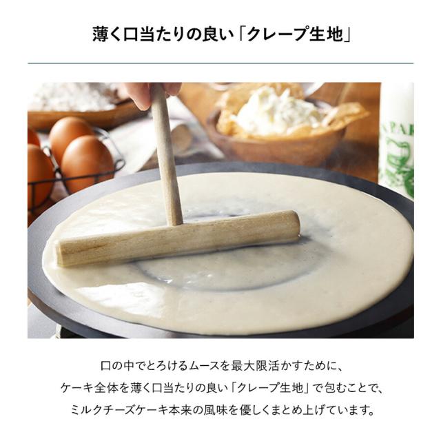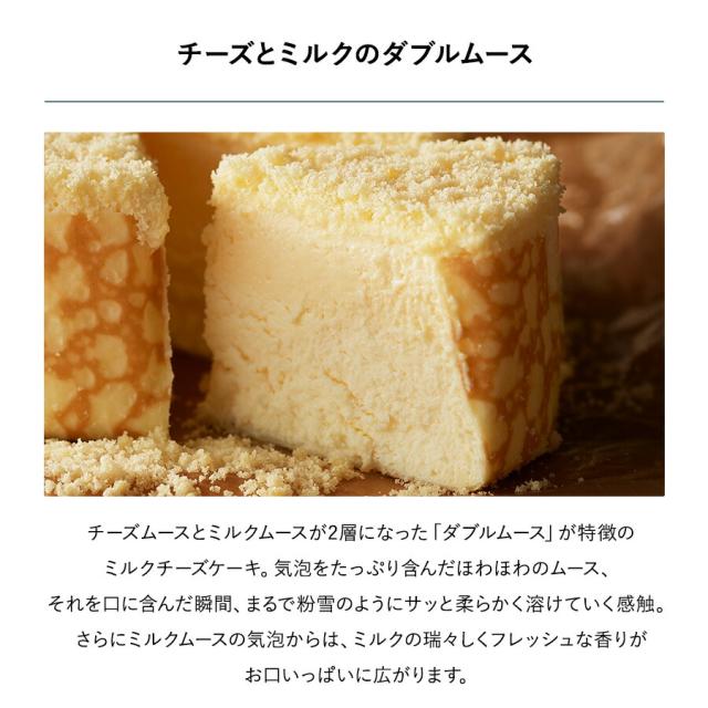 フランス産クリームチーズ&北海道産クリームチーズと北海道産生クリームと厳選したミルクをブレンドし、ミルクとチーズの美味しさにとことんこだわったケーキは、東京ミルクチーズ工場の原点の味。チーズムースとミルクムースの2つの美味しさをしっとりとしたクレープ生地で優しく包みました。