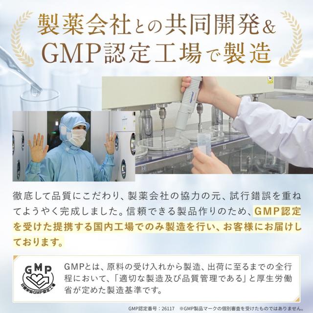 【GMP認定工場】製薬会社との共同開発により、国内GMP認定工場で一貫製造しています。原料の受け入れから製造・出荷まで厳格な品質管理を徹底し、安全で信頼できる製品をお届けします。