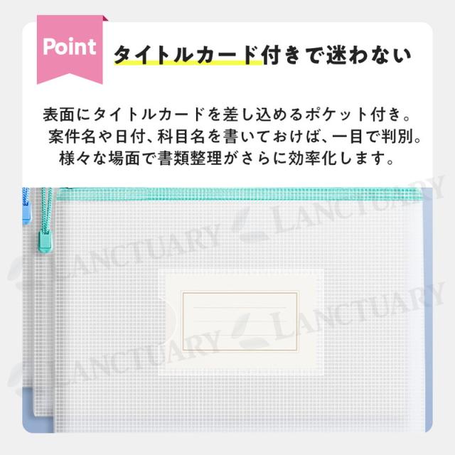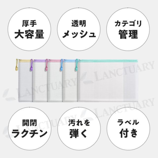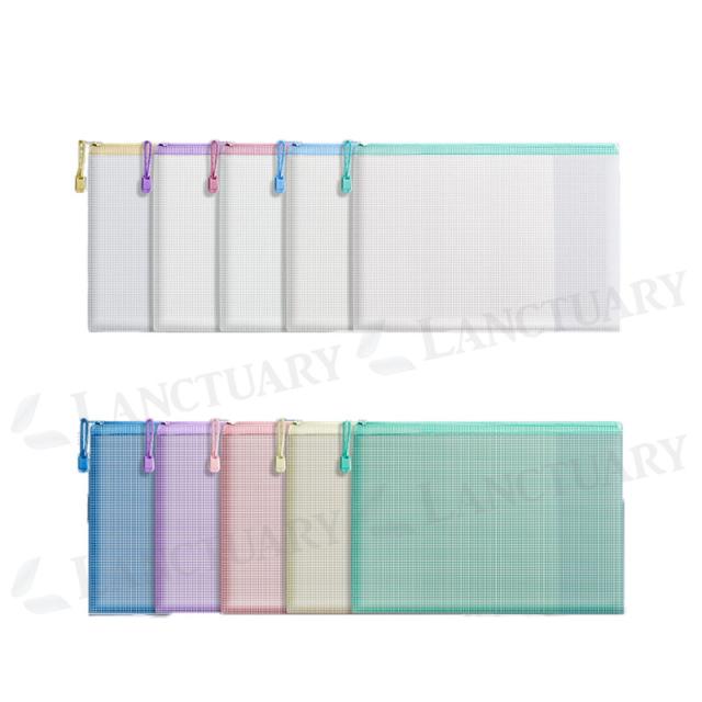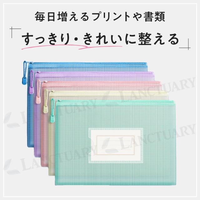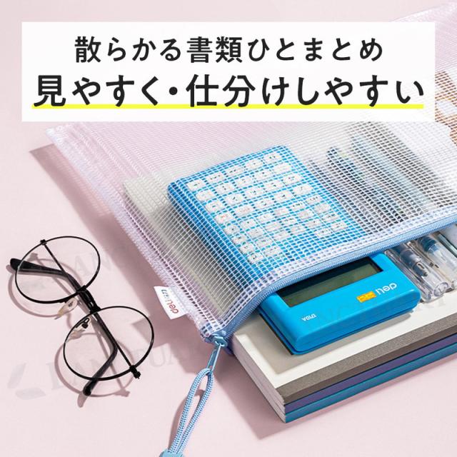 ファイルは中身がひと目で分かる透明メッシュ素材。さらに、5色展開でカテゴリ分けも簡単。