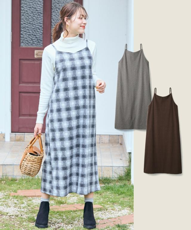 ワンピース ロング マキシ レディース カットソー ジャガード後ギャザーキャミ 冬 ひざ下 | 4L/5L/6L | ニッセン nissen