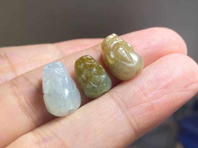 3点セット通穴 貔貅 本翡翠 ミャンマー産 A貨 財布貔貅 御守、一点物です