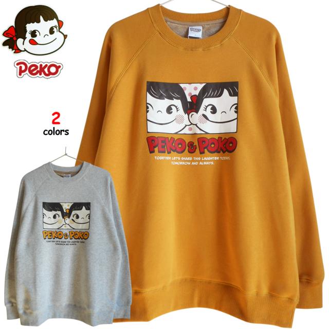 送料無料 不二家 ペコちゃん トレーナー スウェット 裏ボア 裏起毛 レディース ポコちゃん スマイル ペコポコ もこもこ 裏シャギー FUJIYA ミルキー厚手 部屋着 あったか ペアルック サンリオ 防寒 かわいい やわらか 秋冬 オレンジ マスタード イエロー ライトグレー