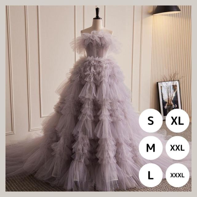 ウェディングドレス 結婚式 前撮り パーティードレス 披露宴 オシャレ パープル フリル かわいい
