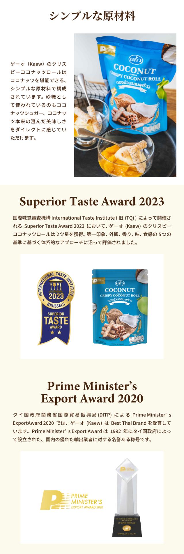 国際味覚審査機構「Superior Taste Award 2023」で2ツ星を獲得し、タイ政府の「Prime Minister’s Export Award 2020」でも表彰された品質。