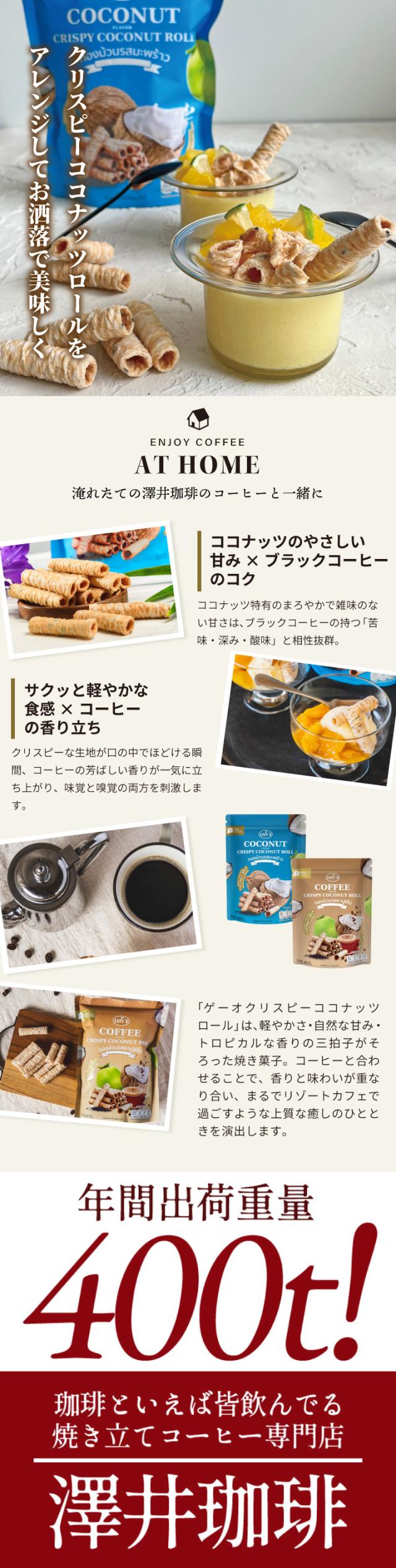 甘すぎない優しさスイーツ 澤井珈琲 お菓子 洋菓子 焼き菓子 小袋 ウエハース 80g×1袋 ゲーオ クリスピーココナッツロール 香ばしい 軽い食感