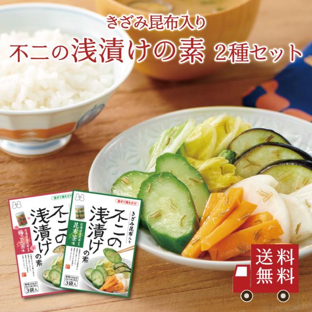 【送料無料】不二の浅漬けの素 お試し2種セット( 昆布茶味 梅こぶ茶味 ) きざみ昆布入り 混ぜて揉むだけ 粉末タイプ 個包装 浅漬けの素 時短 簡単 便利 昆布 出汁 漬物 漬け物 調味料 あと一品に 箸休めに 調味料 メール便 送料無料