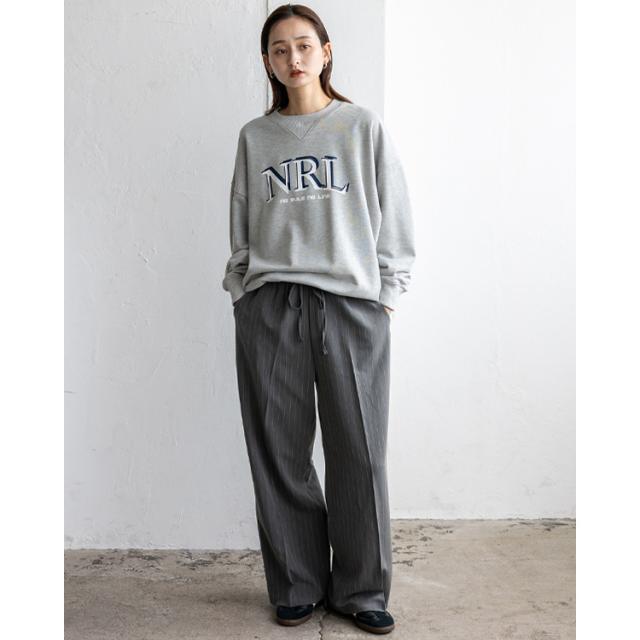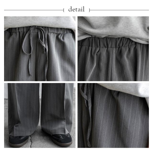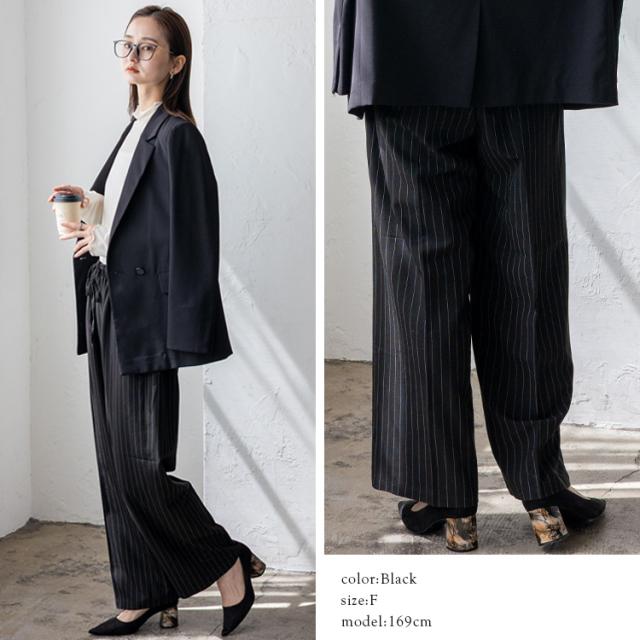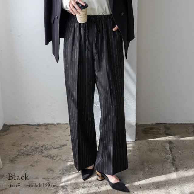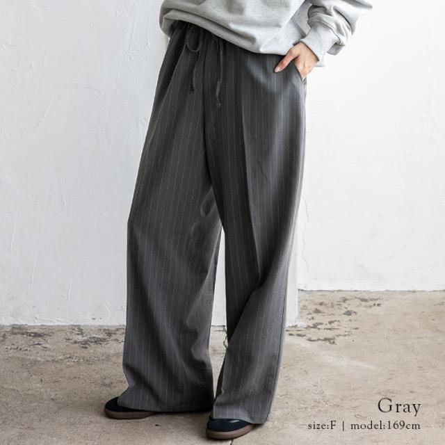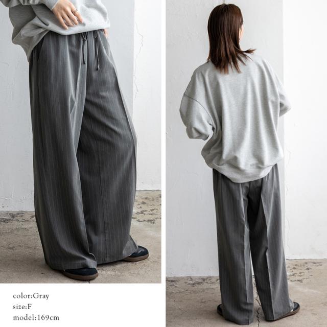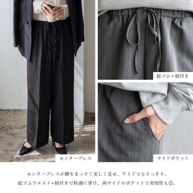 ワイドパンツ レディース 秋冬 大きいサイズ ストライプ ウエストゴム 紐 センタープレス ロング丈 ゆったり ストレッチ オーバーサイズ イージーパンツ 総柄 きれいめ おしゃれ オフィス メンズライク 【メール便】 nrc-0024 【No Rule No Line】