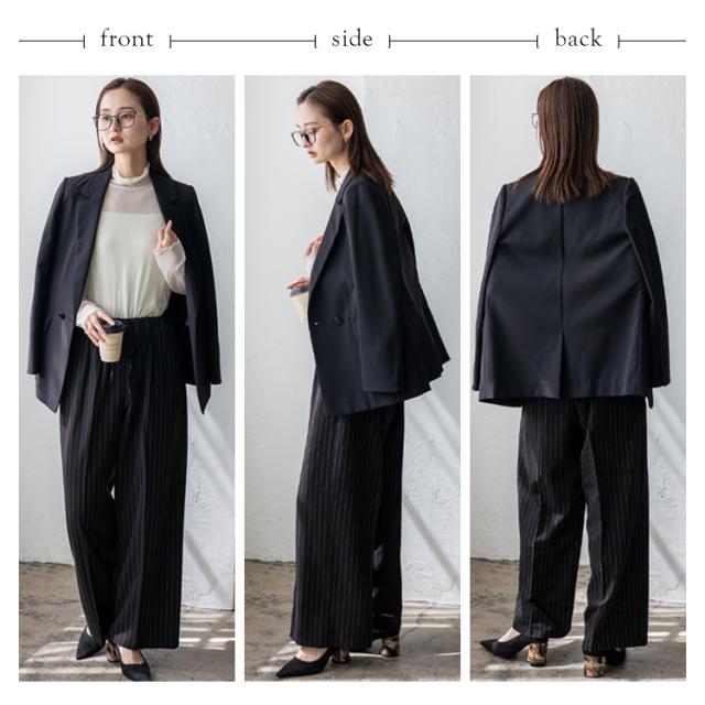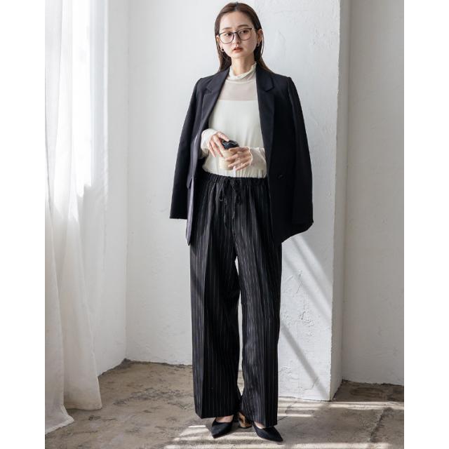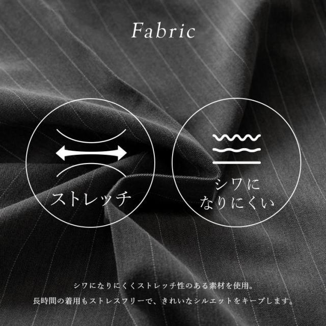 ピンストライプの縦ラインが、全体をスマートに引き締め。
