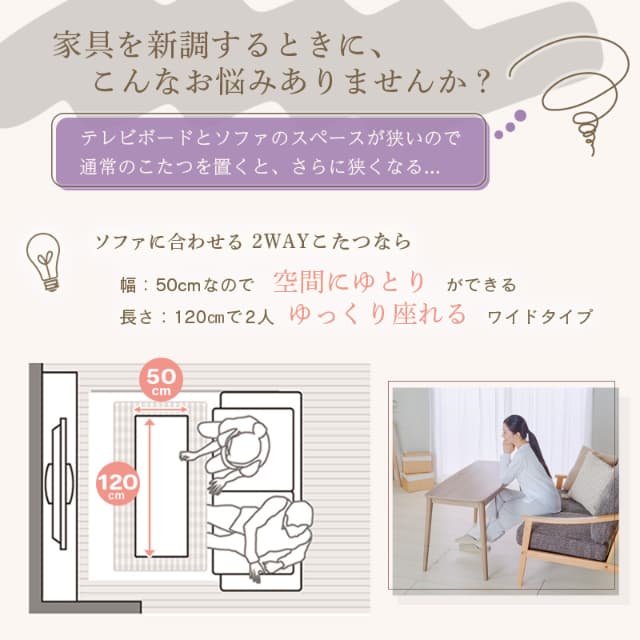 センターテーブルやダイニングテーブルなど、ソファ前テーブルとして1年中ご利用いただけます。