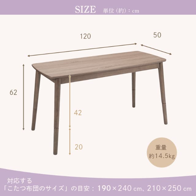対応するこたつ布団サイズ目安:長方形用こたつ布団「190×240cm」「210×250cm」