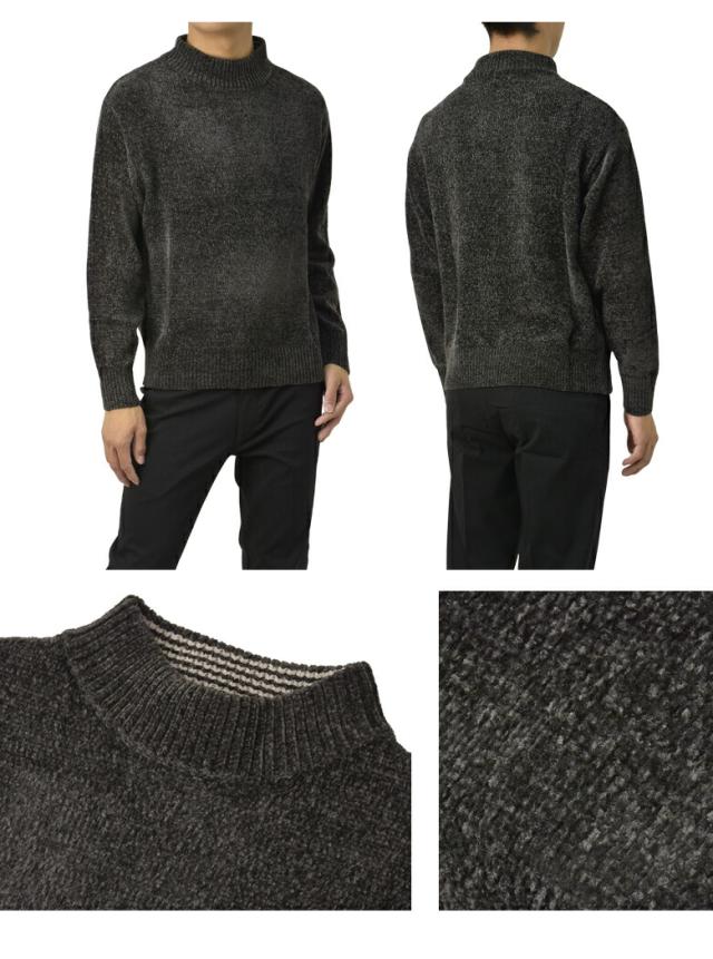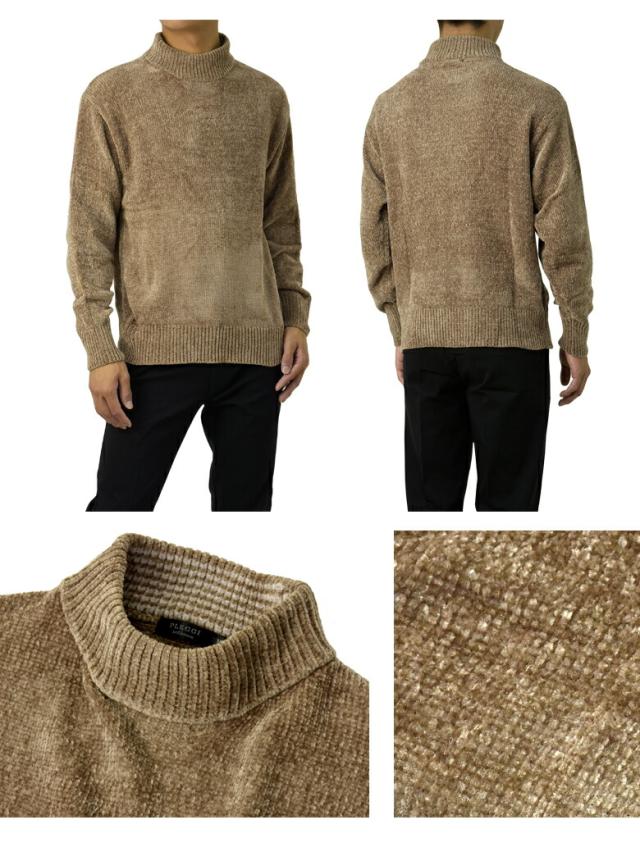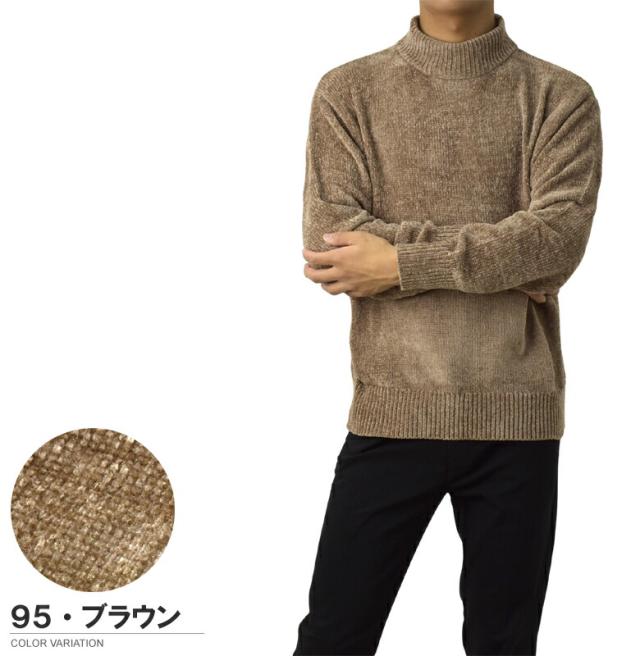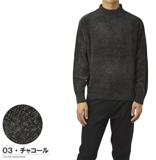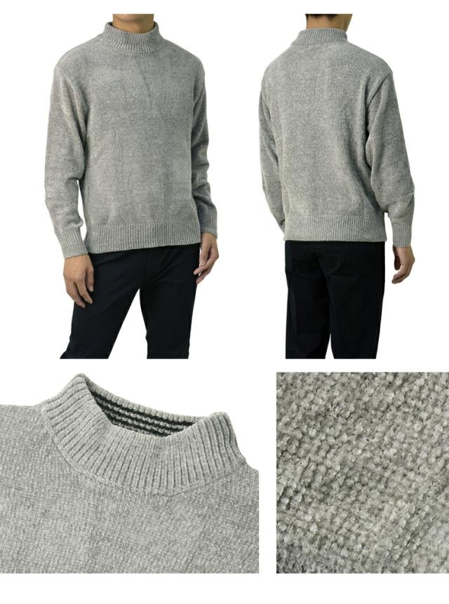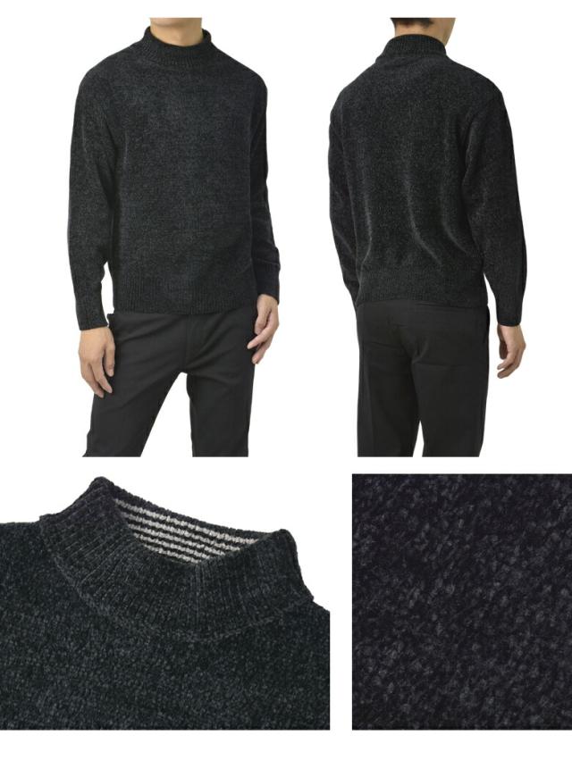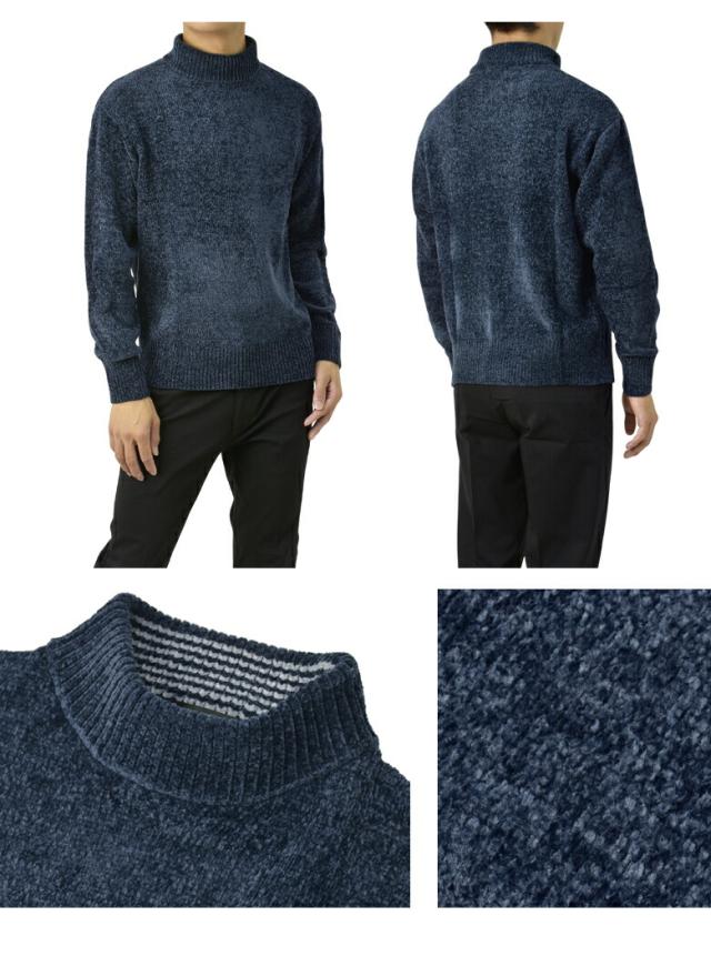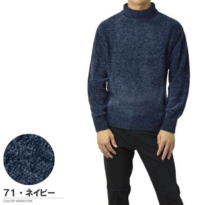 セーター メンズ 長袖 モールニットセーター ハイネック モックネック ベロアニット トップス 秋 冬【A8F】【パケ1】【A】