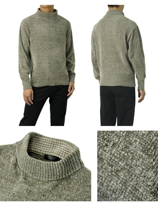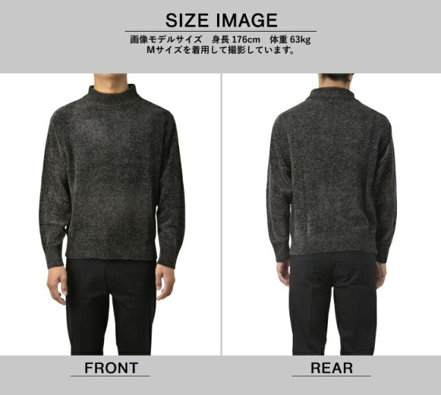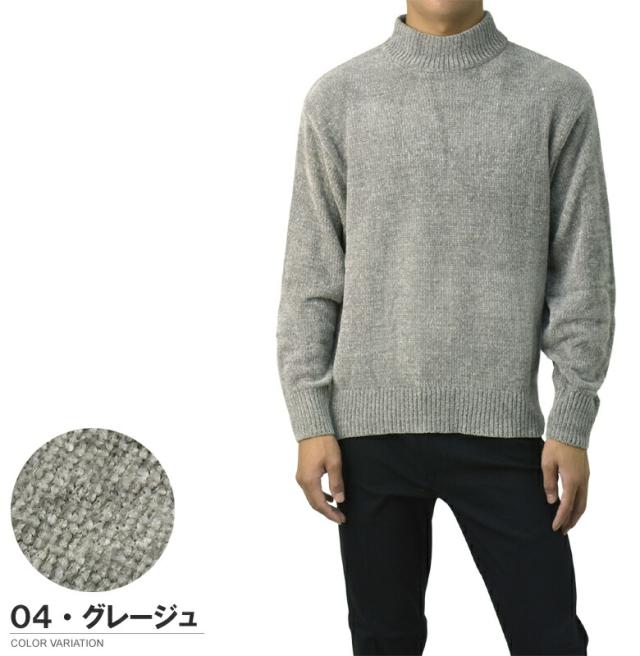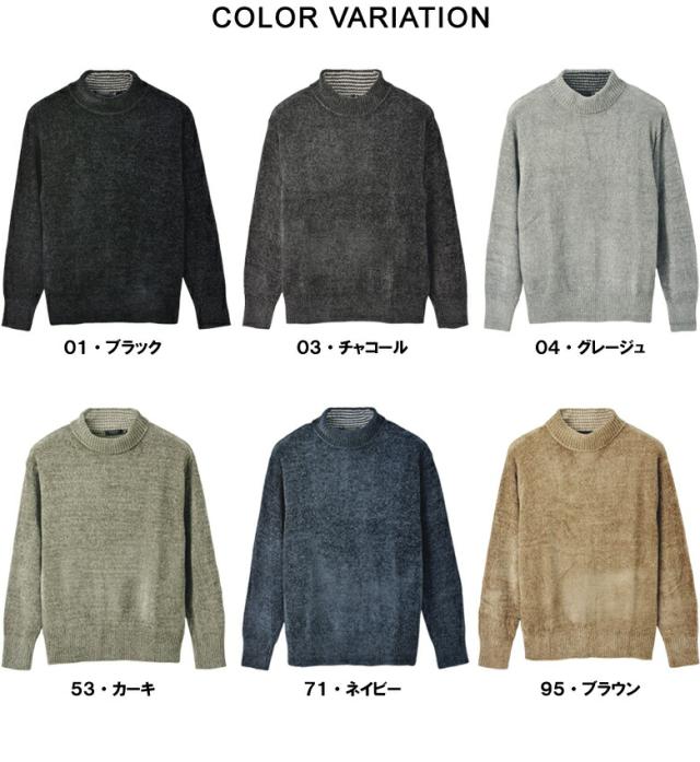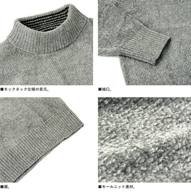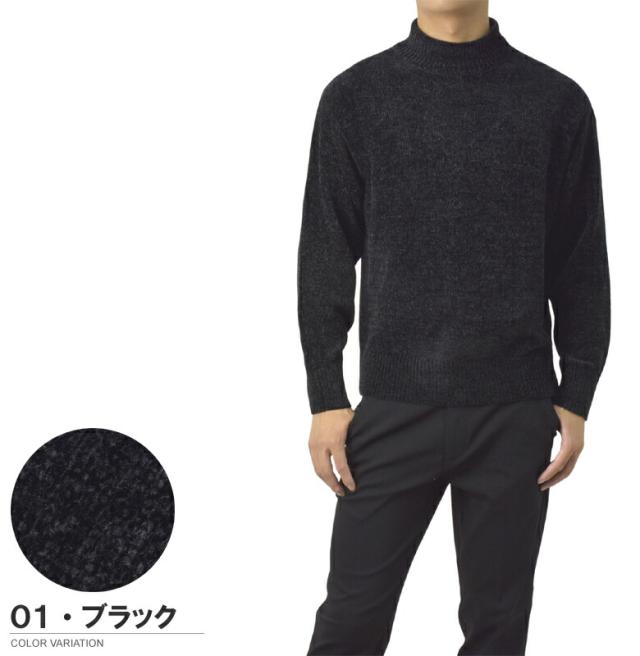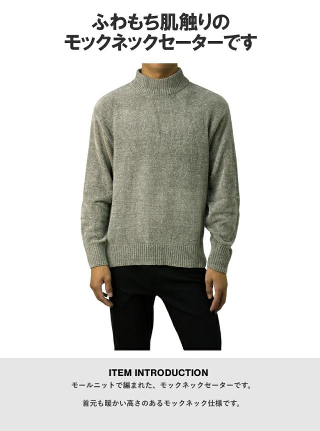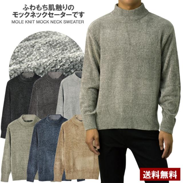 セーター メンズ 長袖 モールニットセーター ハイネック モックネック ベロアニット トップス 秋 冬【A8F】【パケ1】【A】