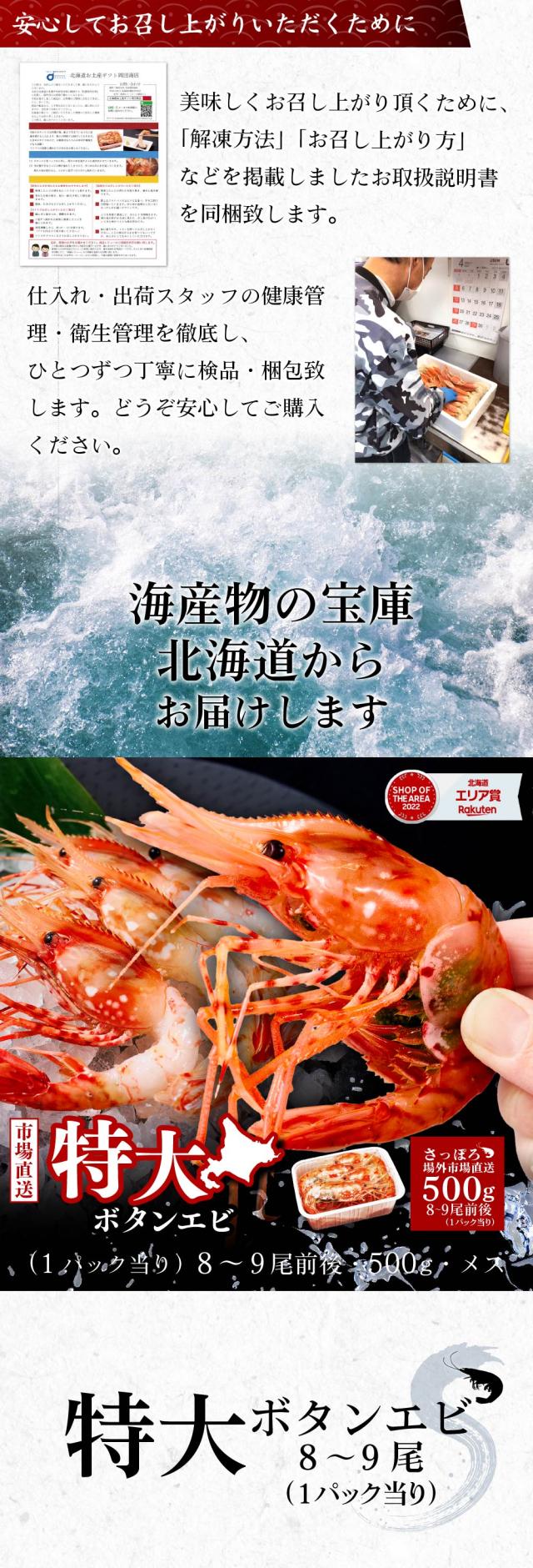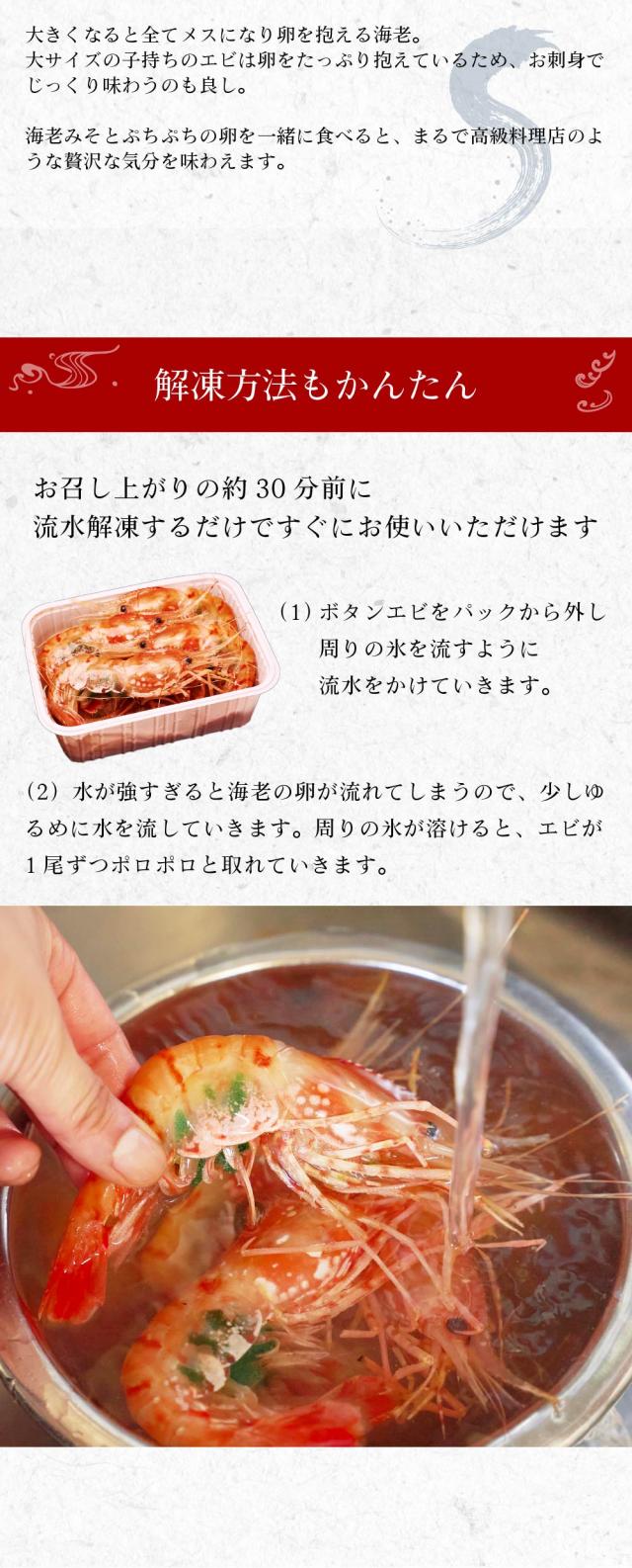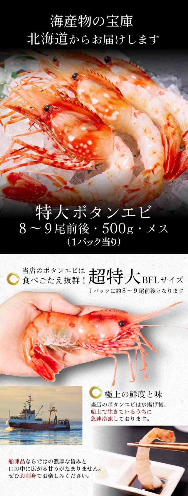 ボタンエビ 特大 2L 500g 刺身用 北海道 送料無料 ぼたん海老 刺身 卵子持ち ギフト お歳暮 お年賀 プレゼント 海鮮丼 手巻き寿司 御祝 内祝 お寿司 BBQ 新鮮 食べ物