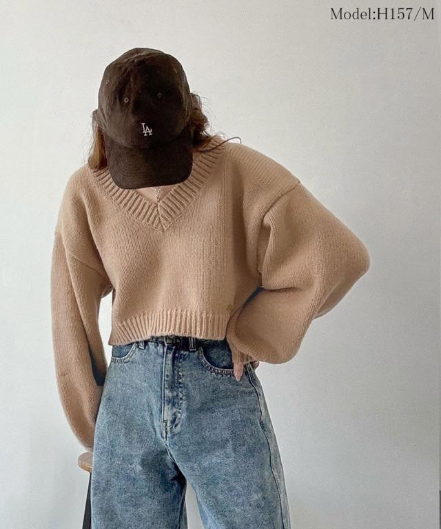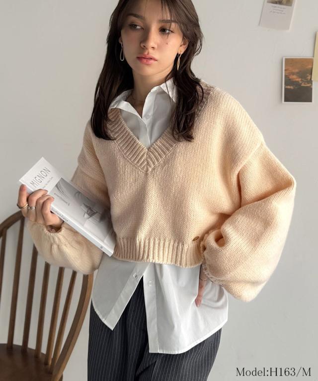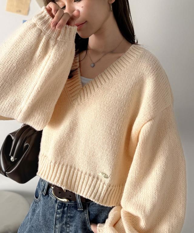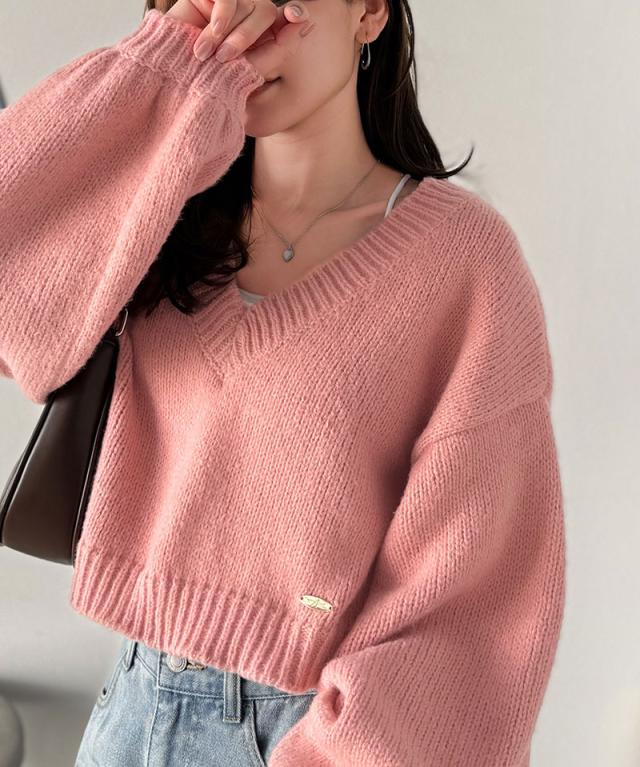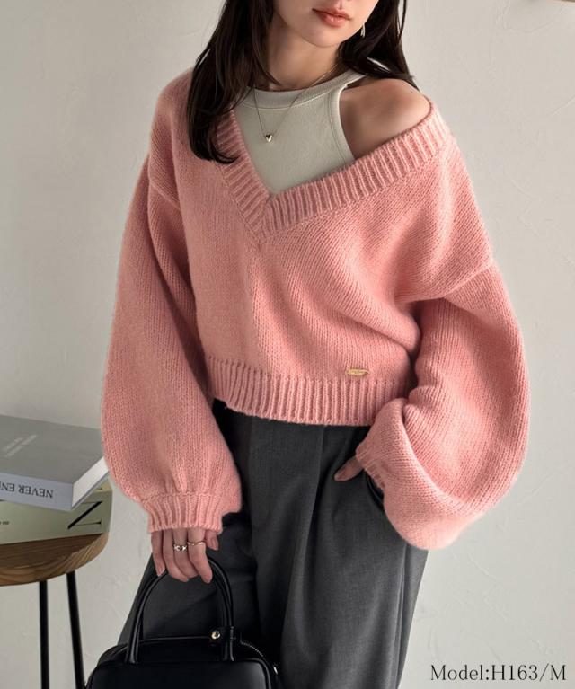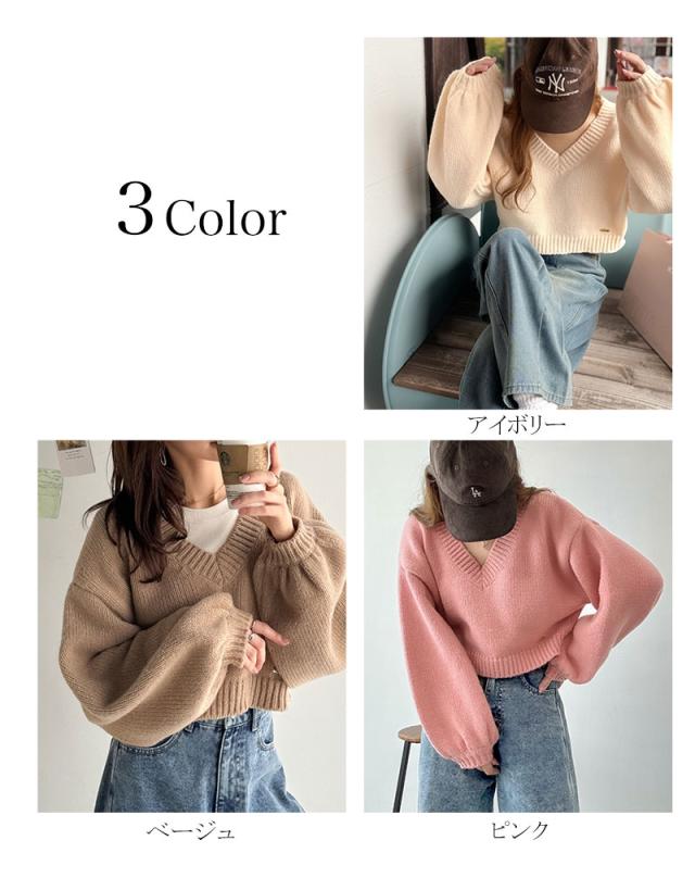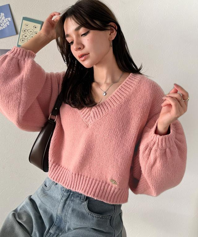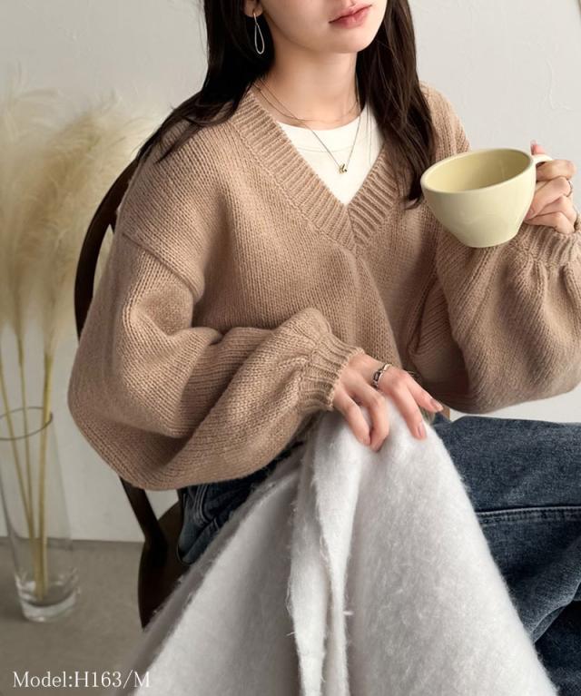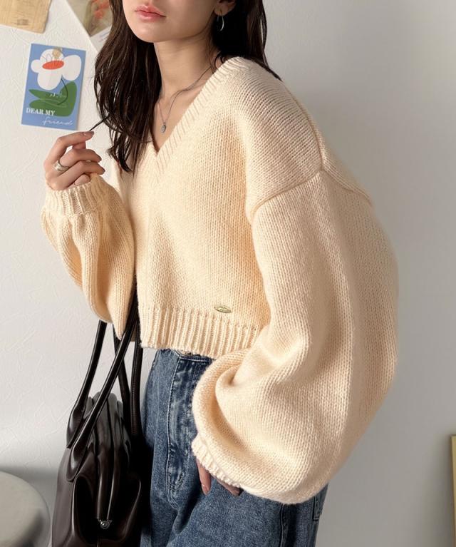 クラシカルエルフ冬新作 AYAさんコラボ商品 ニット レディース かわいい トップス Vネックショート丈 ローゲージ編み 上品 スタイルアップ効果 小顔効果 リラックス フェミニン カジュアル 大きいサイズ 2025aw ce1010523