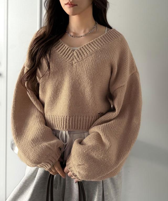 ローゲージ編みが生み出すふんわりとした袖のボリュームが、今季らしく映えるニット!