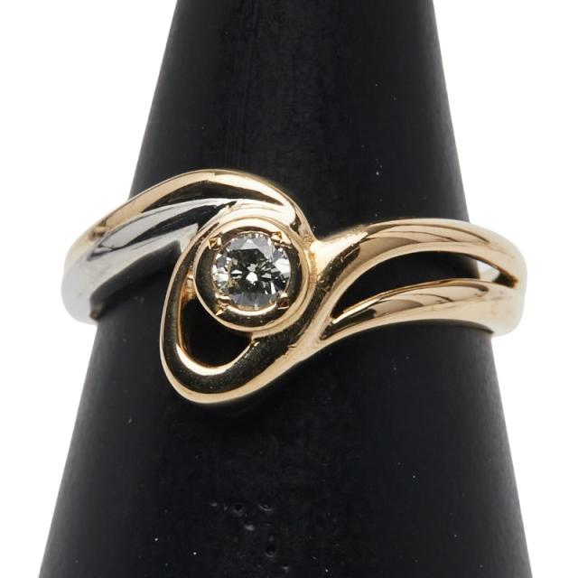 K18YG イエローゴールド Pt900 プラチナ コンビ ダイヤ0.11ct リング 指輪 レディース 12.5号 中古