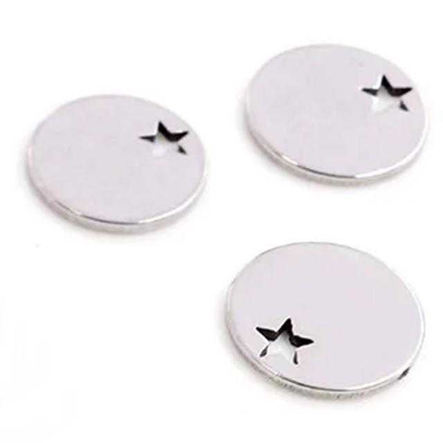サージカルステンレス316L製の丸いドッグタグに星をくり抜いたチャームにできるDIY用のステンレス部品。