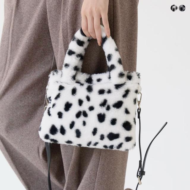 ファーバッグ ミニトート アニマル柄 エコファー 斜めがけ バッグ レディース トート フェイク ショルダー ショルダーバッグ ミニショルダー ふわふわ 小さめ ホワイト グレー ギフト プレゼント (07000691r)