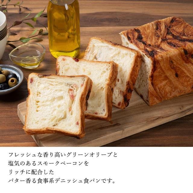 小麦粉(国内製造)、マーガリン、ベーコン、グリーンオリーブ、砂糖、油脂加工食品、卵、パン酵母、粉体調味料、食塩/乳化剤、調味料(アミノ酸等)、リン酸塩(Na)、香料、カゼインNa、酸味料、増粘多糖類、くん液、酸化防止剤(V.C、V.E)、着色料(カロチン、クチナシ、パプリカ色素)、微粒酸化ケイ素、発色剤(亜硝酸Na)、ビタミンC、(一部に小麦・卵・乳成分・大豆・豚肉・鶏肉を含む)
