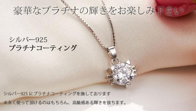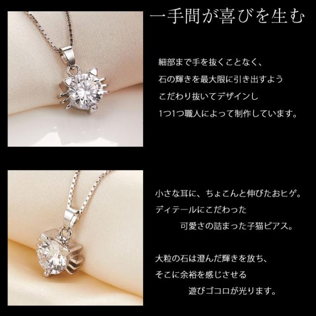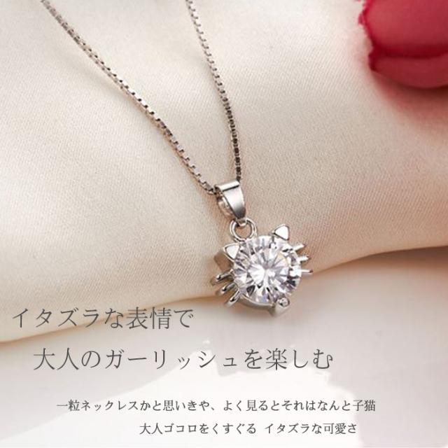 超大粒1.8カラット 猫 ネックレス レディース 子猫 シルバー925 プラチナ仕上げ 猫好き クリスマスプレゼント 女性 彼女 嫁 妻 娘 母 誕生日 記念日 ギフトラッピング対応 クリスマス_wp