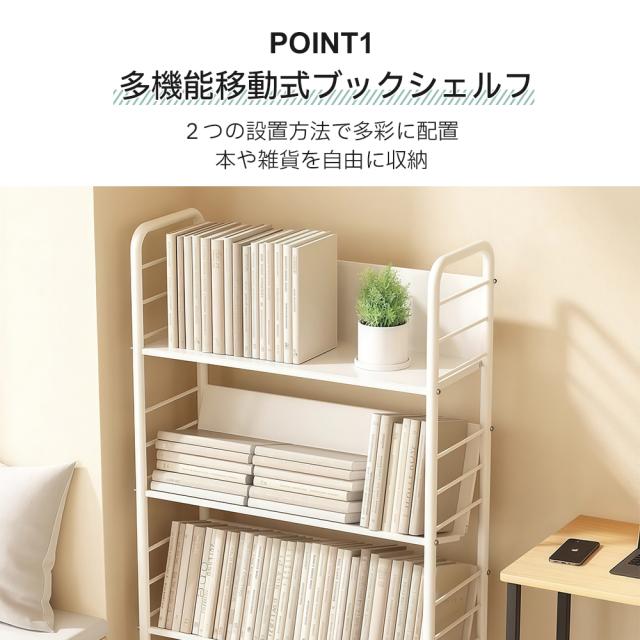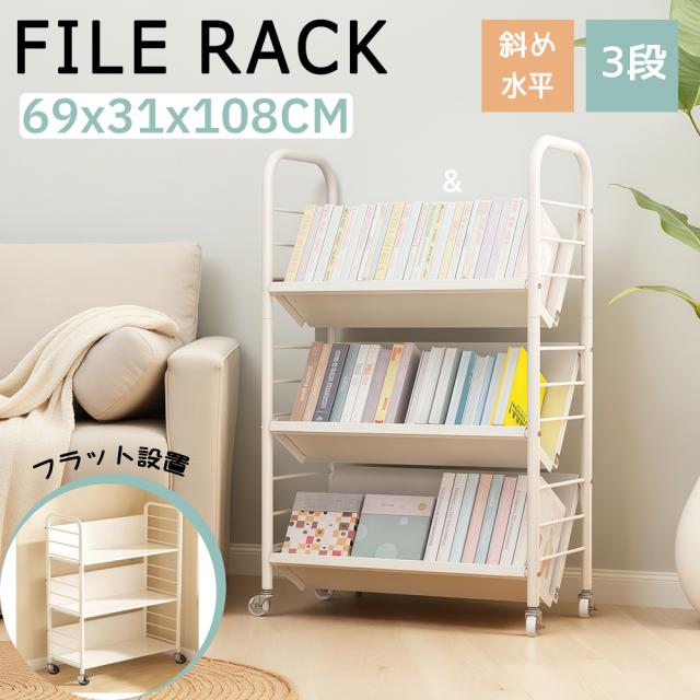 移動式 ファイルラック ブックシェルフ スチールラック 本棚 3段 多機能 フック付き キッチンラック 幅69cm 省スペース キッチン 書斎 リビング オフィス 収納ラック 雑貨棚 おしゃれ 資料整理 隙間収納 絵本漫画 雑誌 学校デスク 子供部屋