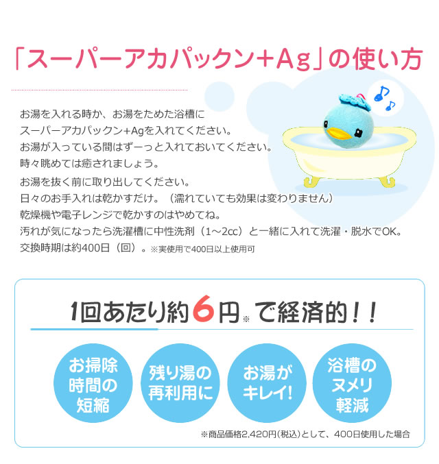 正規代理店品 お風呂掃除 抗菌 スーパーアカパックン+Ag ニオパックン塩素オフ 送料無料 純銀 湯垢 湯アカ 皮脂 節水 エコ 省エネ ヌメリ 残り湯 銀イオン ミューファン 汚れ 長持ち SUPER アカパックン スーパーアカパックン +Ag 浴槽用塩素除去 塩素除去 塩素 恵川商事