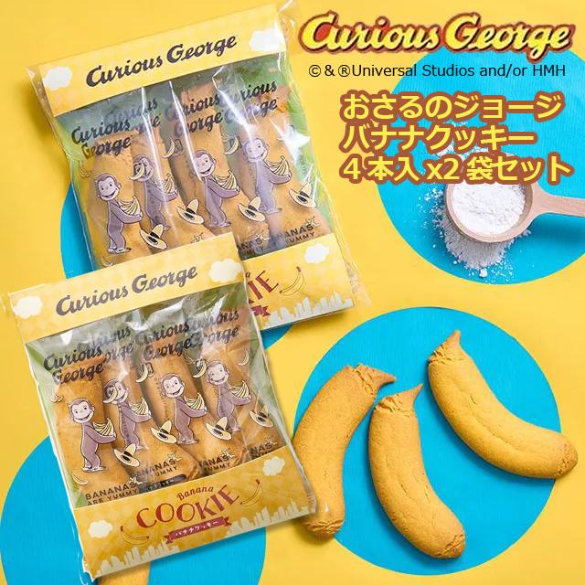 おさるのジョージバナナクッキー4本入x2袋セット Curious George お菓子 スイーツ 焼菓子 8本 プレゼント ギフト サクサク食感 バナナの香り