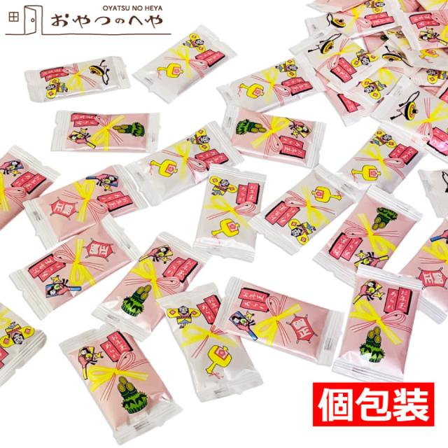 正月にちなんだイラストをプリントした個包装に入った縁起の良いおかきです。